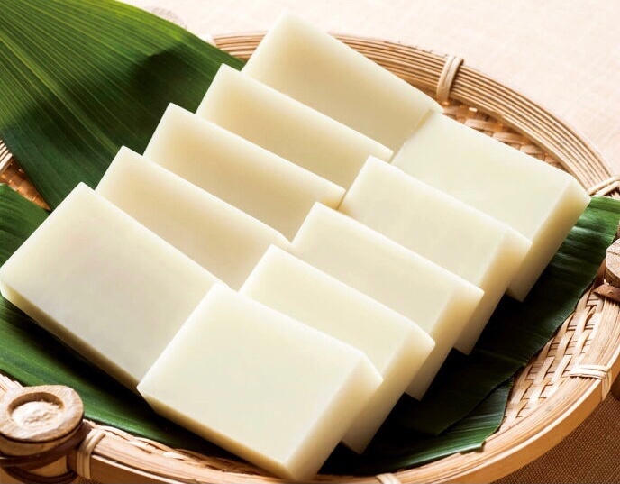 ふわもちの求肥で、当店で焼き上げたふわふわスポンジ、生クリーム、苺を包んで仕上げました。